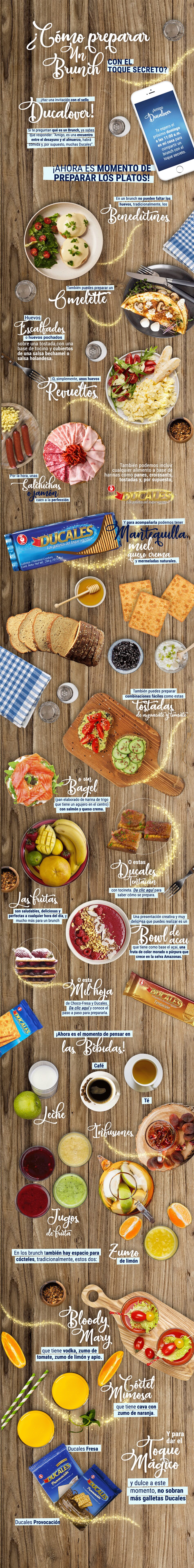 Ahora que ya sabes qué es un Brunch y un poco de su origen, ¿qué tal si planeamos uno y sorprendemos a tus seres queridos? En esta infografía te explicamos cómo hacerlo y las preparaciones que puedes realizar para enamorar a tus invitados. Y bueno, como eres un Ducalover, te daremos algunos tips para que lo hagas con el toque secreto. ¡Empecemos!