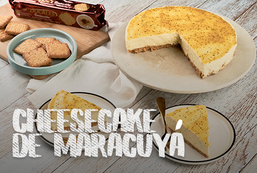 Paso 7.Calienta unos segundos la salsa de maracuyá que reservaste y agrégala encima del cheesecake repartiéndola muy bien por la parte de encima. Esto puedes hacerlo cuando el cheesecake lleve 1 hora en la nevera.