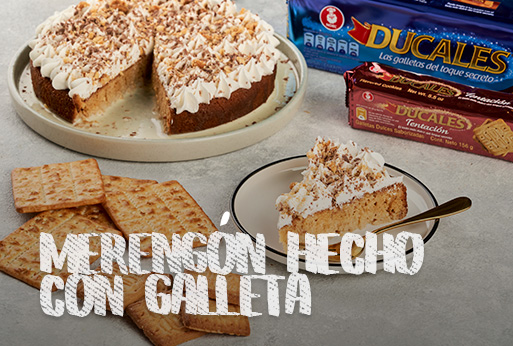 Paso 4.Arma tu merengón hecho con galletas: pon una galleta de base, agrega crema chantilly, melocotones y sigue con una galleta. Finaliza con crema y merengue. Repite el proceso y tendrás aproximadamente 10 postres individuales.