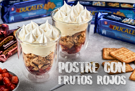 Este es uno de los postres con frutos rojos más deliciosos y fácil de preparar. Los frutos rojos son una combinación deliciosa que juega muy bien con los postres en especial si son con Ducales, estos frutos son los arándanos, fresas, frambuesas, cerezas y moras, para este postre te sugerimos que predominen las fresas.